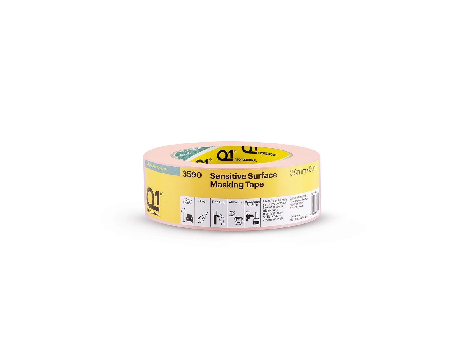 Q1 Pink masking tape which sticks to most metal and plastic surfaces. It offers excellent adhesion, and good holding power and is also tearable by hand, allowing you to work speedily. Removes cleanly and easily after use, meaning no adhesive residue. This multi-purpose masking tape is used for a variety of applications including painting sharp edges, automotive work, DIY, varnishing, home decorating, sealing and labelling, due to its handy write-on surface.